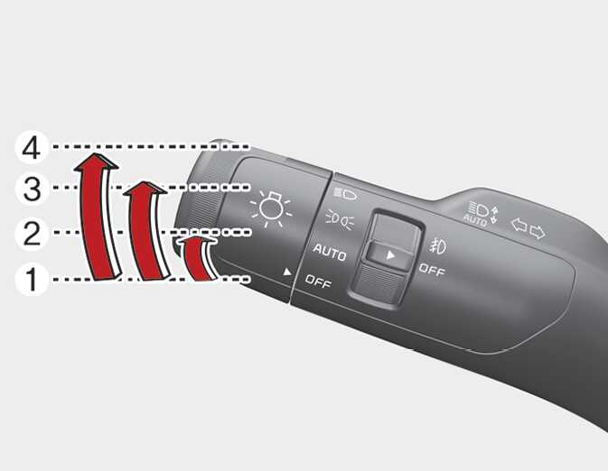 조명 스위치의 끝을 잡고 돌리면 다음과 같이 조명됩니다.