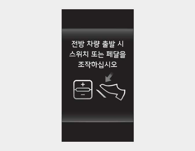 차량 정체가 발생하는 구간에서 스마트 크루즈 컨트롤로 일정거리를 유지하던 전방 차량이 정차를 하게 되면, 전방 차량 뒤에 정차를 합니다. 전방 차량이 출발하면 다시 거리를 유지하며 따라갑니다. 단, 정차 후 약 일정시간 이후에는 가속 페달을 밟거나 「+」, 「-」 또는