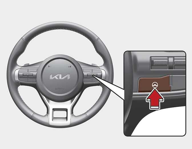 시동 「ON」 상태에서 차로 유지 보조 버튼을 누르면 기능이 켜집니다. 기능이 켜지면 계기판에 「