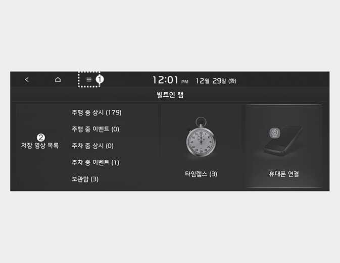 차량의 시간을 변경하는 경우 저장 파일의 순서가 뒤바뀔 수 있습니다. 차량의 시간을 변경하기 전에 저장된 파일 순서에 문제가 없는지 확인하십시오.