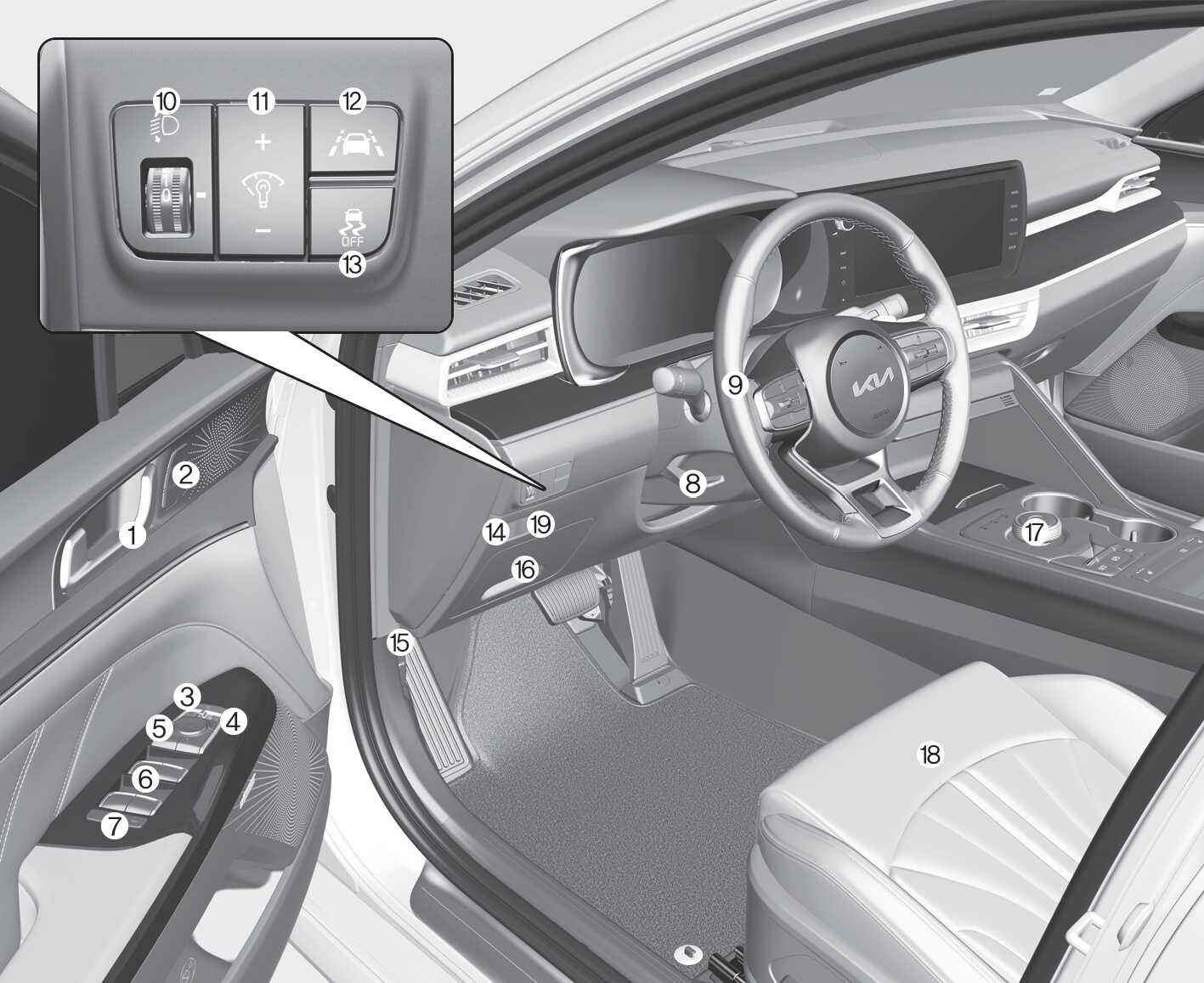 본 도안은 실제 차량과 다를 수 있습니다. (스위치의 형상 및 배열은 사양 적용에 따라 달라질 수 있습니다.)