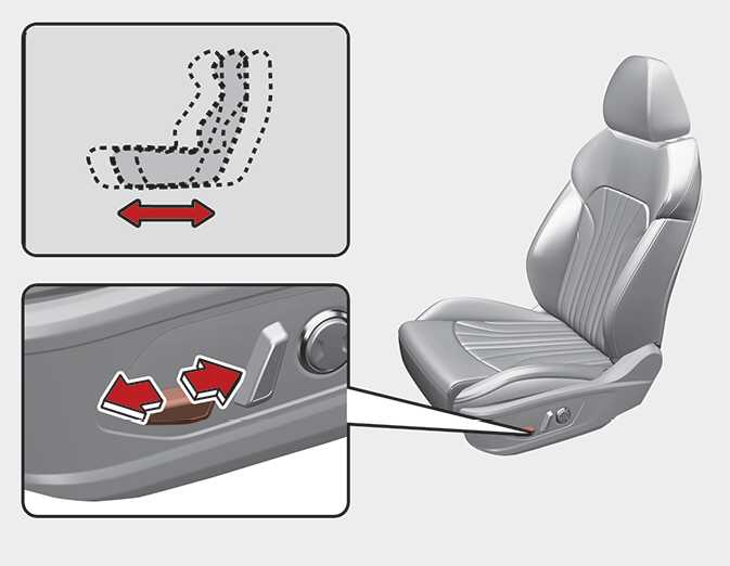 조절 스위치를 앞 또는 뒤로 움직이면 좌석이 앞 또는 뒤로 이동합니다. 원하는 위치에 이르면 스위치에서 손을 놓으십시오 .