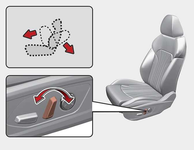 전동식 좌석 조절장치는 모터에 의해 작동됩니다. 조절이 완료되면 작동을 멈추십시오. 과도한 조작은 전기장치에 손상을 줄 수 있습니다.