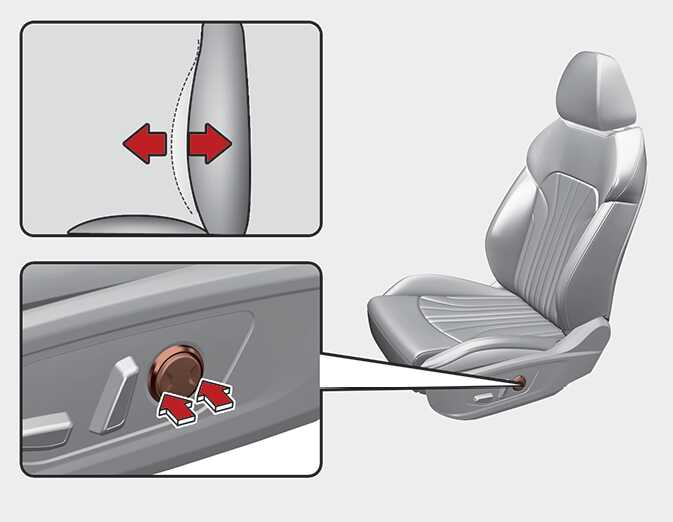 조절 스위치 조작 시 필요 이상의 힘을 스위치에 가하면 다른 부위까지 좌석이 움직일 수 있습니다. 적당한 힘을 가하여 조절하십시오.