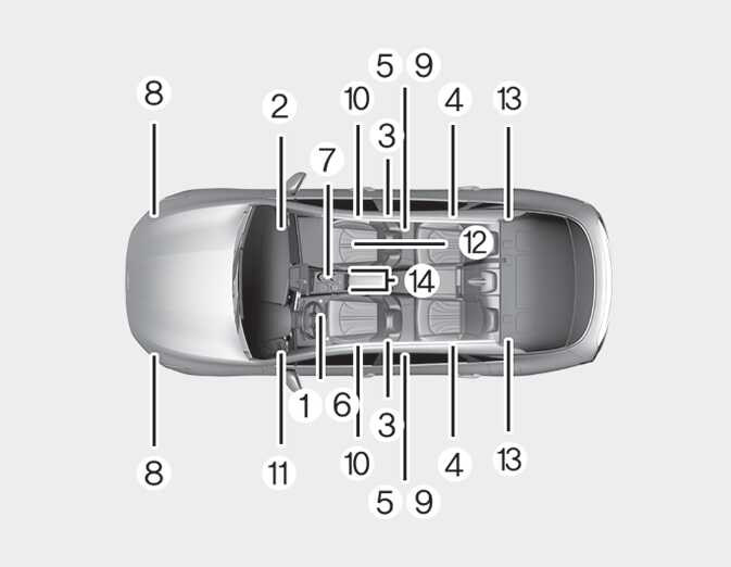 에어백 제어 모듈은 아래 부품들과 연동하여 작동합니다.