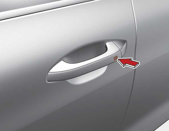 도어 잠금/잠금 해제 장치는 스마트 키가 도어의 바깥 손잡이와 70~100cm 이내의 거리에 있어야 감지되어 작동합니다.