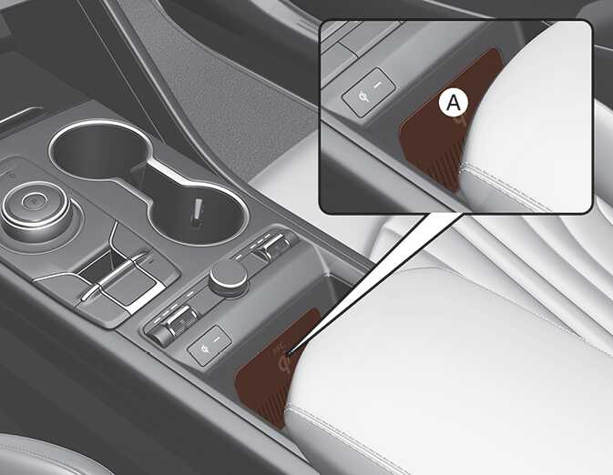 - 등록된 스마트폰의 NFC 안테나를 실내 인증 패드 (무선 충전기) 중앙에 올린 후 브레이크를 밟고 시동 버튼을 눌러 시동을 거십시오.