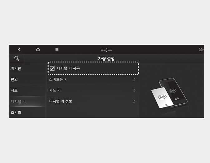 인포테인먼트 시스템 사양 미적용 시 : 계기판 메뉴에서 '디지털 키 → 디지털 키 사용' 체크 해제