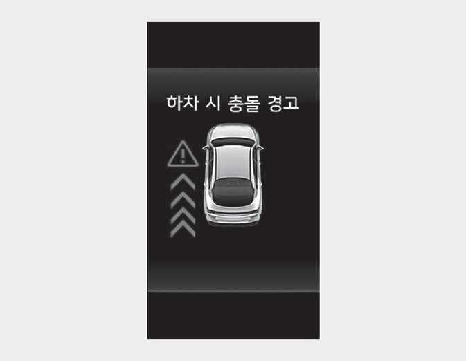 차량 도어를 여는 순간, 뒤에서 접근하는 차량이 위험 수준으로 감지되면 계기판에 ‘하차 시 충돌 경고’ 경고문을 표시하고 경고음이 일정 시간 동안 울립니다.
