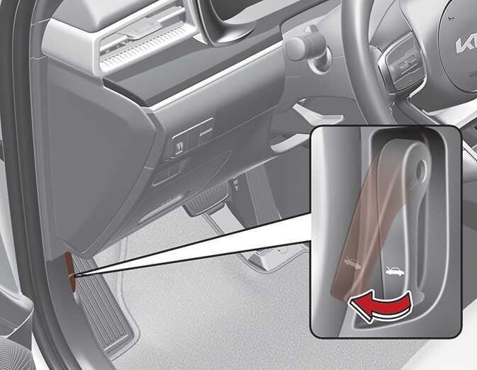 엔진 후드 열림 레버를 당기십시오. 엔진 후드가 조금 열립니다.