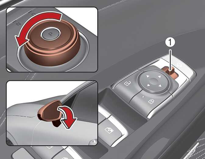 실외 미러 조절 선택 스위치(1)의 위치에 따라 기능이 설정 또는 해제됩니다.