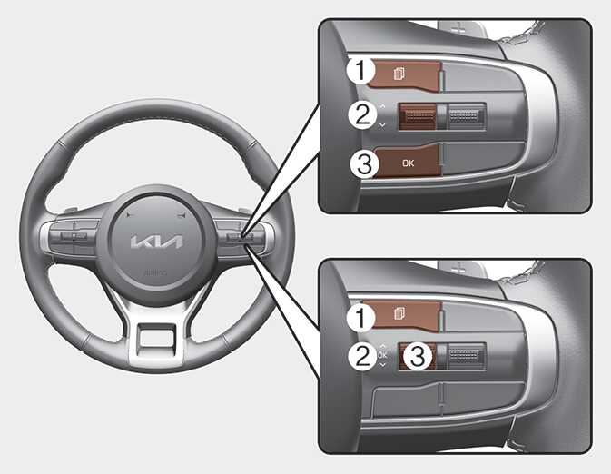 LCD 표시창 모드는 스티어링 휠에 장착된 버튼을 이용하여 변환할 수 있습니다.