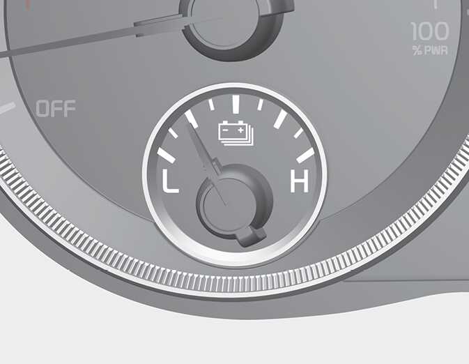 표시계에서 「L」 위치는 구동용 배터리 잔량이 부족한 상태이며, 「H」 표시는 구동용 배터리 93% 이상의 충전 상태를 표시합니다.