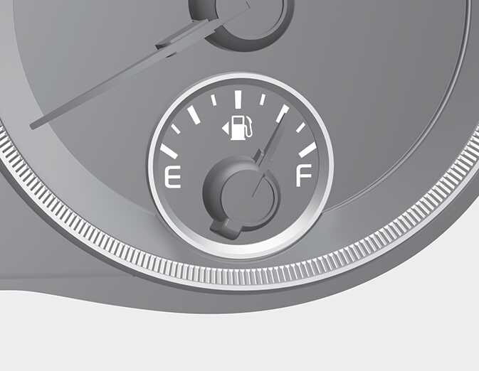 연료가 완전히 떨어질 때까지 주행하면 촉매장치, 연료장치 등에 이상이 발생될 수 있으므로 항상 연료의 양이 충분한지 확인하십시오.