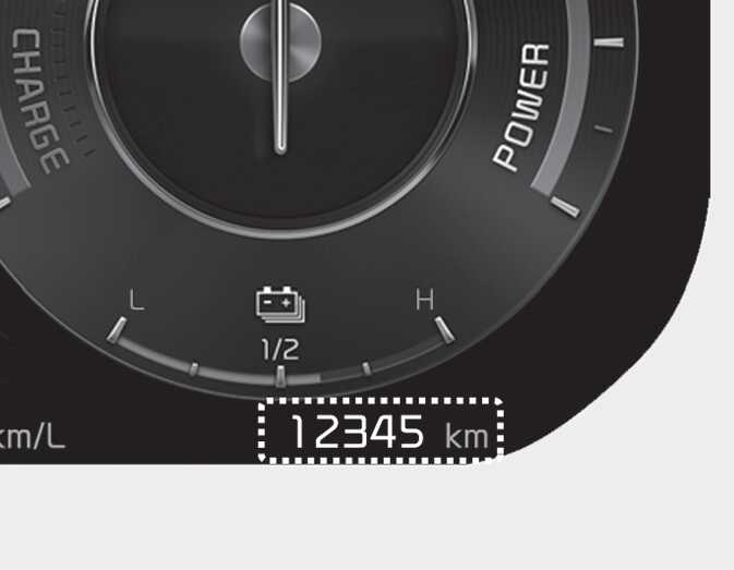 적산거리계 (ODO) 주행한 총 거리를 km 단위로 나타냅니다. 그림 1. A타입 ODL3049125 그림 2. B타입 ODL3H049108 트립컴퓨터 모드 전환에 관계 없이 적산거리계를 항상 표시합니다. 차량 출고 시 적산거리계가 90km 미만은 정상입니다.