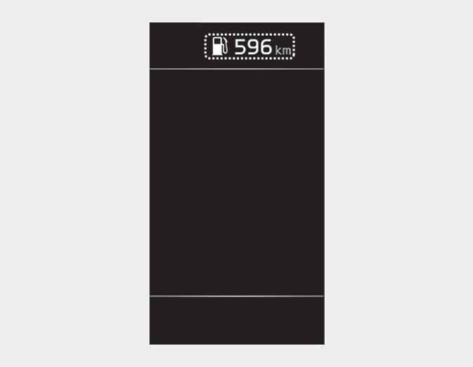 최소 표시 범위는 1km 이며, 주행 가능 거리가 1km 미만이면, “---”로 표시됩니다.