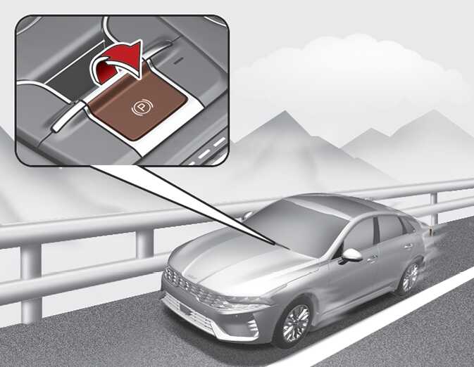 또한, 주차 브레이크를 해제하지 않은 상태에서 차량이 약 10km/h 이상으로 주행하면 경고음이 울리고 경고등이 깜빡여 주차 브레이크를 해제하지 않았음을 알려줍니다.