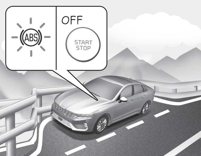 경고등이 꺼지지 않는 경우 또는 주행 후 다시 경고등이 켜지는 경우에는 ABS 장치의 고장이므로 자사 직영 서비스센터 또는 서비스협력사에서 점검 및 정비를 받으십시오.