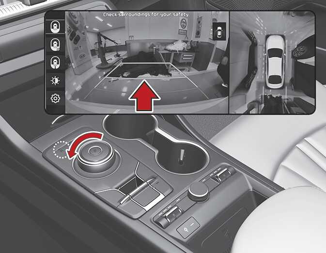 후진할 때 차량의 후방 상태를 인포테인먼트 시스템 화면에 보여주는 주차 안전 기능입니다.