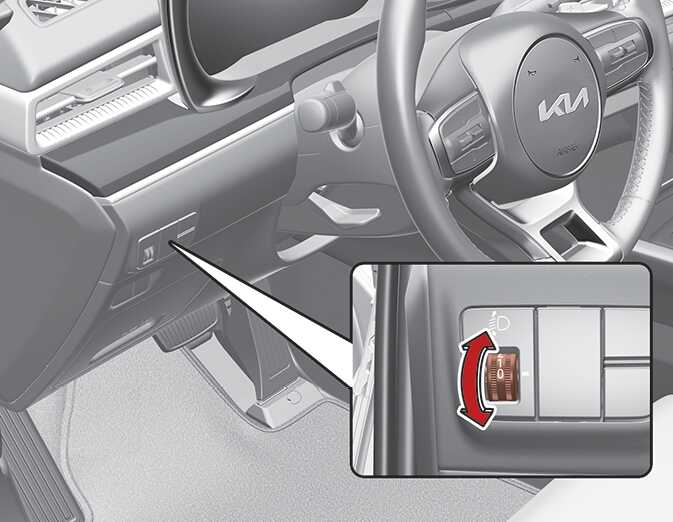 조절 장치의 숫자가 높을 수록 전조등 각도는 아래를 향하도록 되어있습니다.