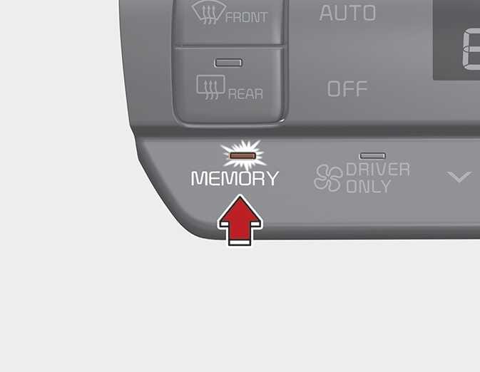 이후 저장된 설정값을 불러오려면 시동이 켜진 상태에서 MEMORY 버튼을 누르십시오. 메모리 버튼 표시등이 켜지며 설정된 공조 상태로 조절됩니다.