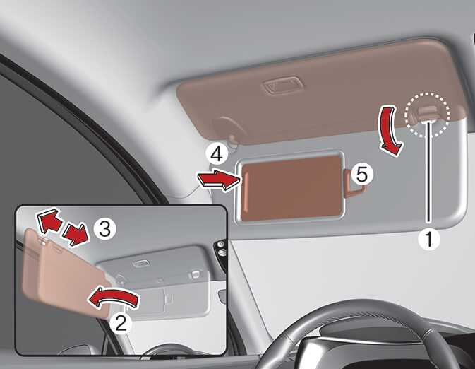 선바이저 안쪽의 커버(4)를 밀면 거울이 있습니다.