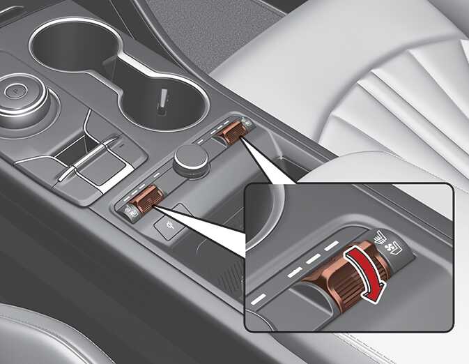 시동 상태에서 해당 열선 시트/통풍 시트 레버를 뒤로 당기면 해당 표시등이 켜지면서 해당 좌석에서 바람이 나옵니다.