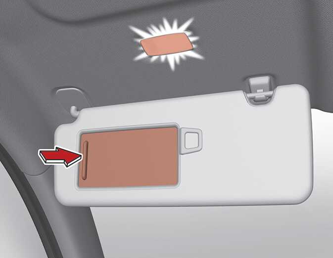 선바이저 램프 (사양 적용시) 선바이저 거울 커버를 열면 램프카 켜집니다. ODL3049097 주의 거울을 사용하신 후에는 반드시 커버를 원위치시키십시오. 계속 램프가 켜져 있을 경우, 배터리 방전과 선바이저 손상을 초래할 수 있습니다.