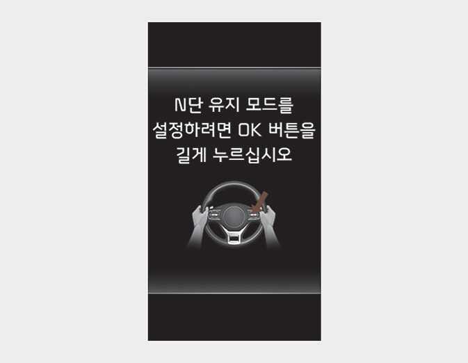 계기판에 “N단 유지 모드를 설정하려면 OK 버튼을 길게 누르십시오” 메시지가 뜨면, 스티어링 휠에 있는 OK 버튼을 길게 누르십시오.