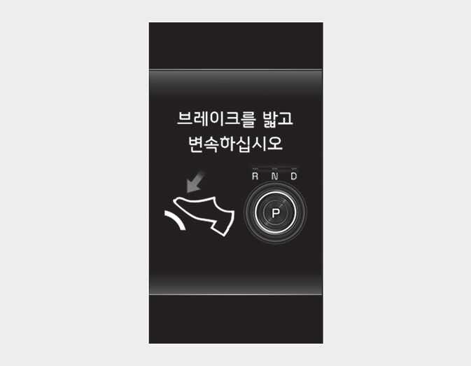 변속할 때 브레이크 페달을 밟지 않으면 표시창에 경고문이 뜹니다.