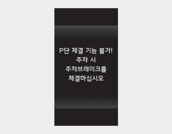 「P」(주차)단 체결 기능에 이상이 있을 때 표시창에 경고문이 뜹니다.
