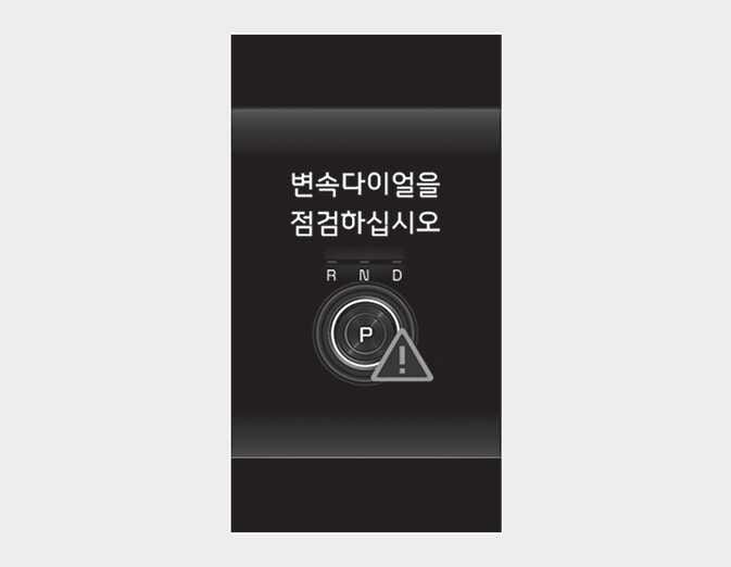 변속 다이얼 위에 물건이 놓여져 있는지 확인하고, 지속적으로 경고문이 표시될 경우 자사 직영 서비스센터나 서비스협력사에서 점검을 받으십시오.