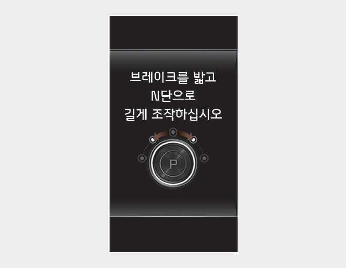 「N」(중립)단 주차를 할 때 브레이크를 밟지 않거나 오른쪽 또는 왼쪽 1칸을 길게 유지하지 않았을 때 표시창에 경고문이 뜹니다.