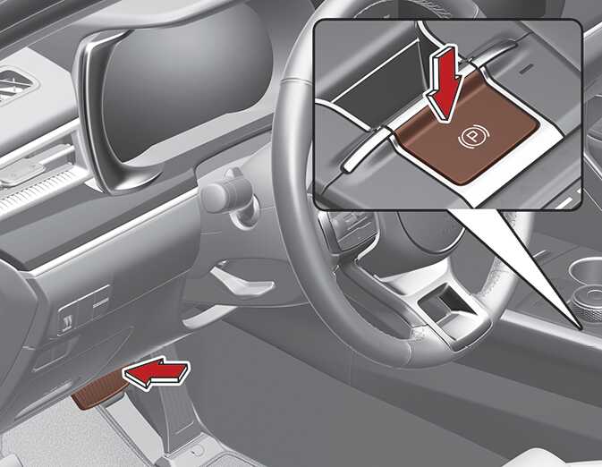 브레이크를 밟고 전자식 파킹 브레이크 (EPB) 스위치를 눌러 해제할 수 있습니다. 단 아래의 모든 조건이 만족되는 경우에 해제가 가능합니다.