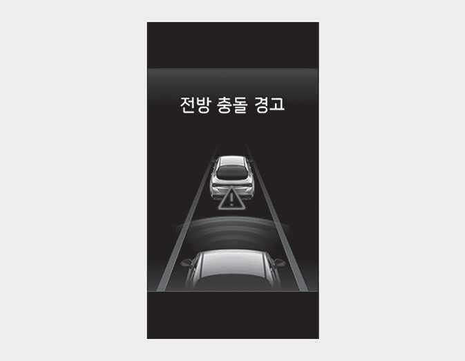 계기판 또는 인포테인먼트 시스템(사양 적용 시)에서 ‘충돌 경고’를 선택한 경우에는 브레이크 제어가 작동하지 않습니다.