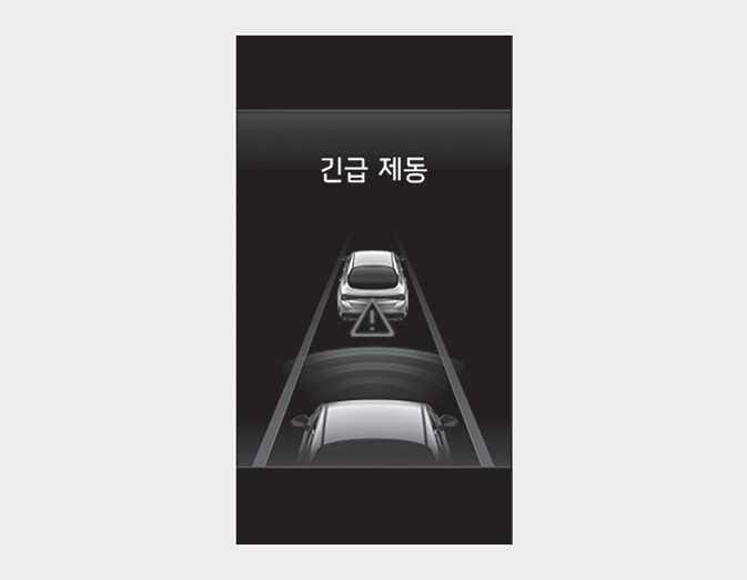 충돌 직전에 브레이크 제어가 최대로 작동하여 전방 차량과의 충돌할 때 충격을 저감합니다.