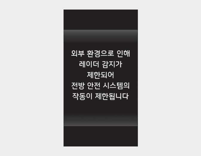 하지만, 시동을 건 직후 센서가 오염된 경우 또는 감지되는 물체가 존재하지 않는 경우(개활지 등) 기능이 정상 작동하지 않을 수 있습니다.