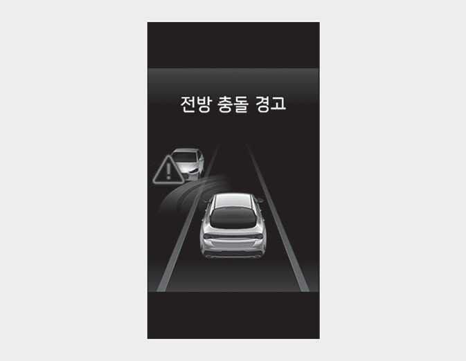 계기판 또는 인포테인먼트 시스템(사양 적용 시)에서 ‘충돌 경고’를 선택한 경우에는 브레이크 제어가 작동하지 않습니다.
