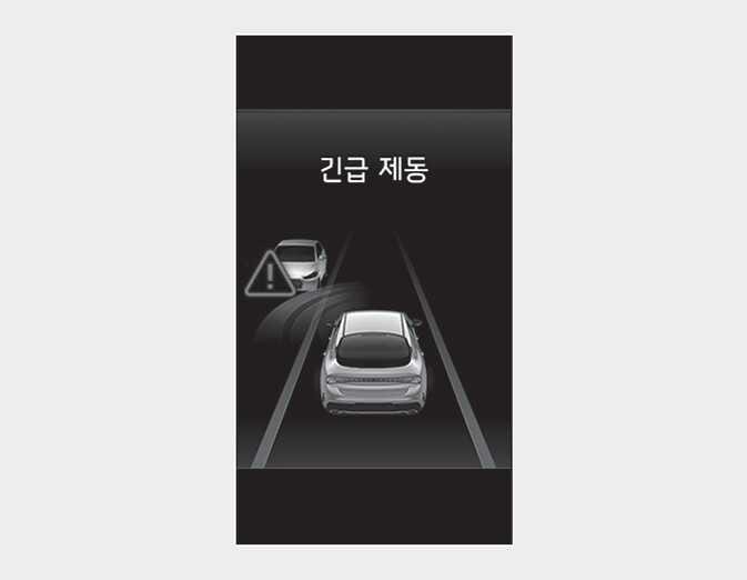 충돌 직전에 브레이크 제어가 최대로 작동하여 전방 차량과의 충돌할 때 충격을 저감합니다.