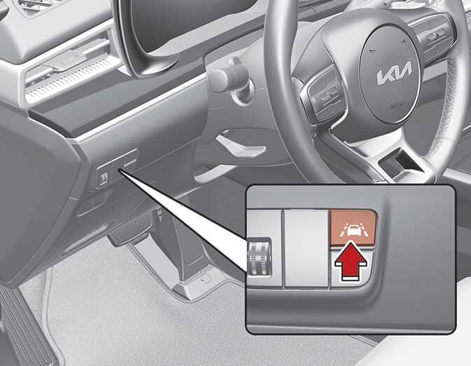 시동 「ON」 상태에서 차로 안전 버튼을 누르면 기능이 켜집니다 . 기능이 켜지면 계기판에 흰색 「