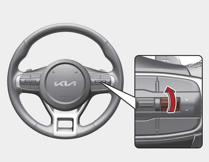 설정 속도 증가 ODL3A0513431 「+」 스위치를 위로 짧게 올릴 때마다 1km/h 씩 속도가 증가합니다. 「+」 스위치를 길게 밀어 올리면 10의 배수로 설정 속도가 증가합니다. 원하는 속도에 맞춰지면 손을 떼십시오. 180km/h 까지 속도를 설정할 수 있습니다.