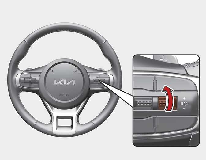 - 「+」 스위치를 짧게 밀어 올릴 때 마다 1 km/h씩 설정 속도가 증가합니다.