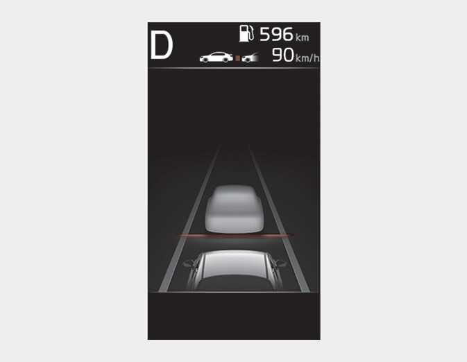 전방에 차량이 있을 경우에만 LCD 표시창 상에도 전방에 차량 형상이 나타납니다.