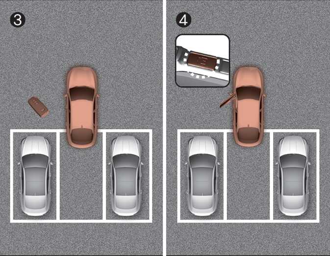 승차가 어려운 좁은 주차 공간에서 원격 전/후진 활용 방법 (직각 출차)