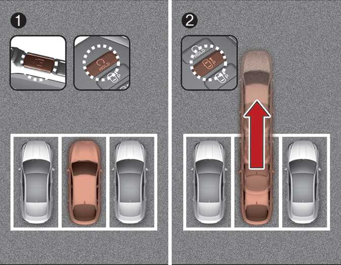 )을 누르고, 스마트 키를 소지한 채 차량에 탑승하여 원격 전/후진 기능을 완 료합니다.