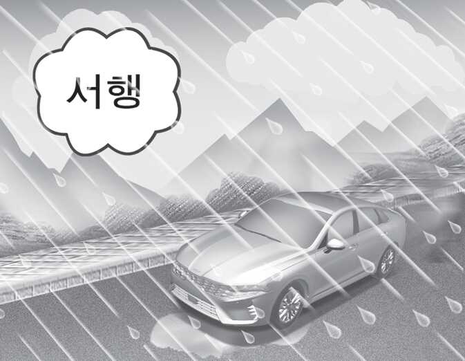 폭우가 내릴 때는 시야를 확보하기가 더 어려워 제동 거리가 더 많이 필요하므로 천천히 운행하십시오.