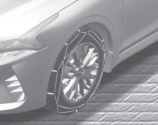 체인 규격이 맞지 않거나 규격대로 장착하지 아니한 경우에는 차량이 훼손될 수 있으며 이로 인해, 조향성 및 안전성에 문제를 야기시킬 수 있으므로 규격에 맞는 체인을 장착하십시오.