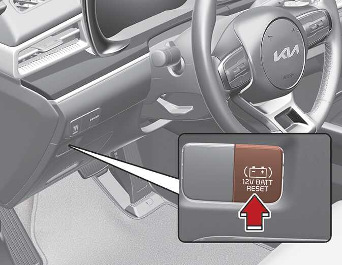 스티어링 휠 좌측에 위치한 「12V BATT RESET」 버튼을 누르십시오.