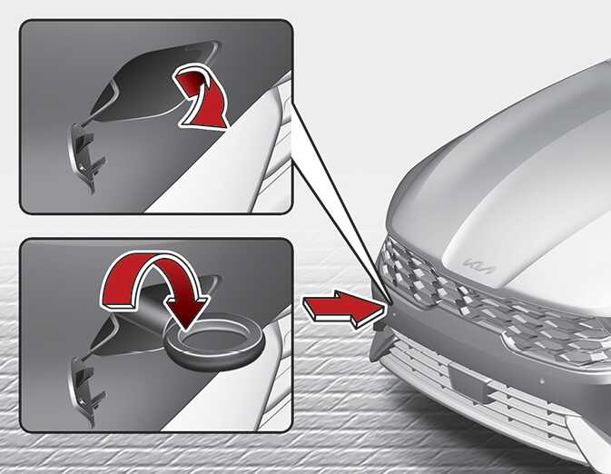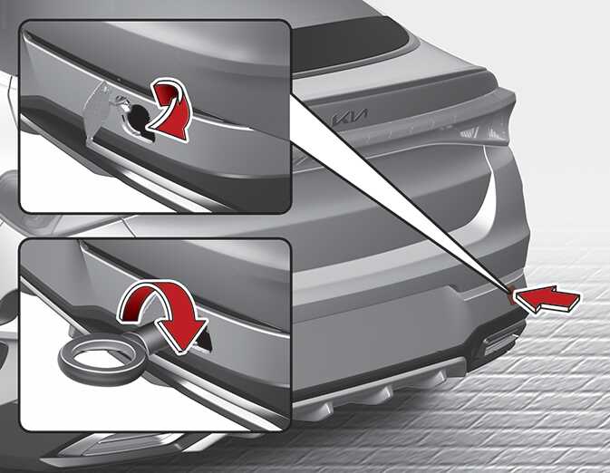견인 트럭 사용이 불가하여, 견인 후크 사용 시 설명서를 준수하여 사용하십시오. 그렇지 않을 경우, 차량 및 관련 부품이 파손될 수 있습니다.