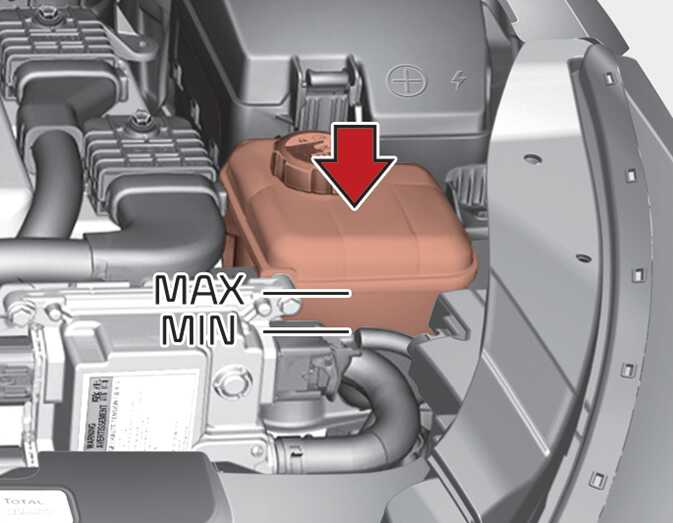 냉각수의 양은 매일 점검하여 필요시 보충하십시오. 냉각수의 양은 엔진이 차가울 때 냉각수 보조 탱크 옆면에 표시되어있는 최대선(MAX)과 최소선(MIN)사이에 있어야 합니다.